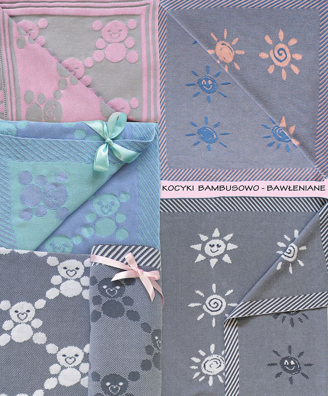 Połączenie przędzy bambusowej z bawełnianą sprawia, że są to kocyki niezwykle delikatne i mięsiste w dotyku i oddychające. Posiadają właściwości antyalergiczne, antygrzybiczne i termoregulacyjne – włókna bambusowe w ciepłe dni dają poczucie chłodu, z kolei włókna bawełniane zapewniają przyjemne ciepło w chłodniejsze dni. Kocyk przyda się także do wózka podczas letnich spacerów – ochroni niemowlaka przed słońcem, a przy tym go nie przegrzeje.